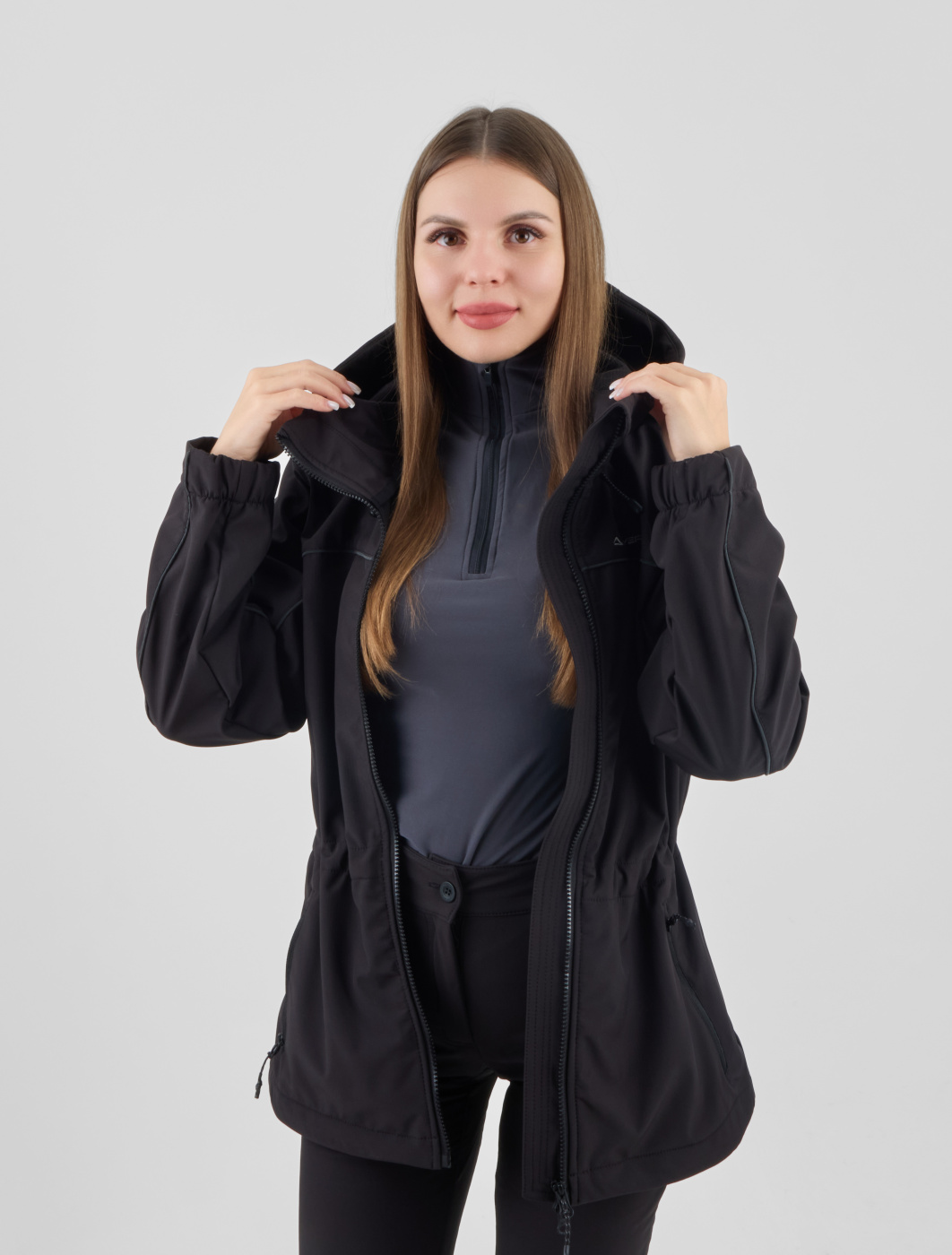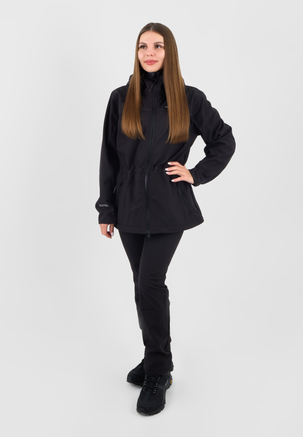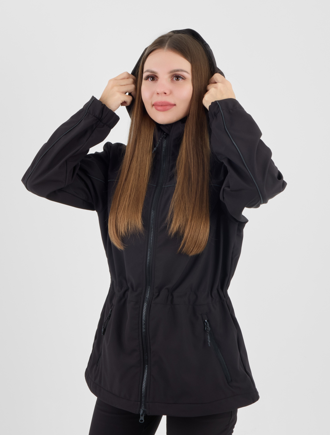 Изготовлена из высокотехнологичного софтшелла на флисе (90% полиэстер, 10% спандекс), который обеспечивает надежную защиту от ветра, сохраняя при этом легкость и свободу движений. Анатомический крой и длина да бедер  делают эту куртку универсальной – она одинаково хорошо подойдет как для прогулок по городу, так и для активного отдыха на природе. Удобные карманы, регулируемый капюшон и эластичные манжеты добавят комфорта в любую погоду. Световозвращающие элементы сделают вас заметным в темное время суток. Стильная, практичная и невероятно удобная – куртка «Кама» станет вашей любимой курткой в межсезонье!