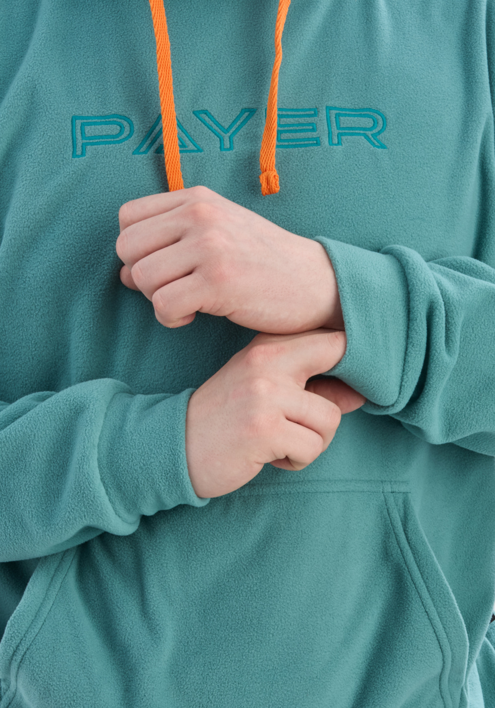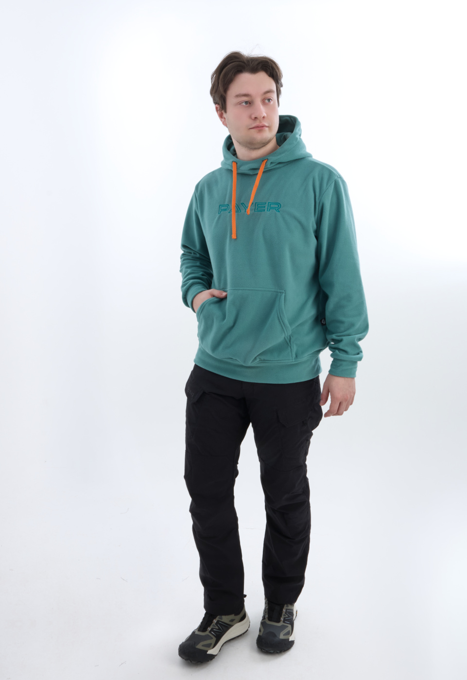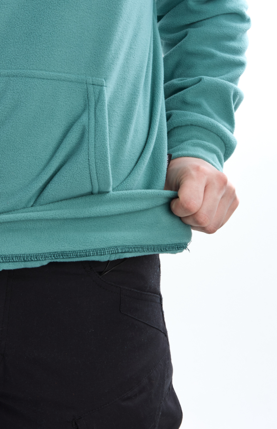 Толстовка оснащена удобным капюшоном, который защитит вас от ветра, и эластичными манжетами на рукавах и по низу, что обеспечивает плотную посадку и предотвращает попадание холодного воздуха. Просторные карманы добавляют практичности, позволяя хранить мелкие предметы под рукой.