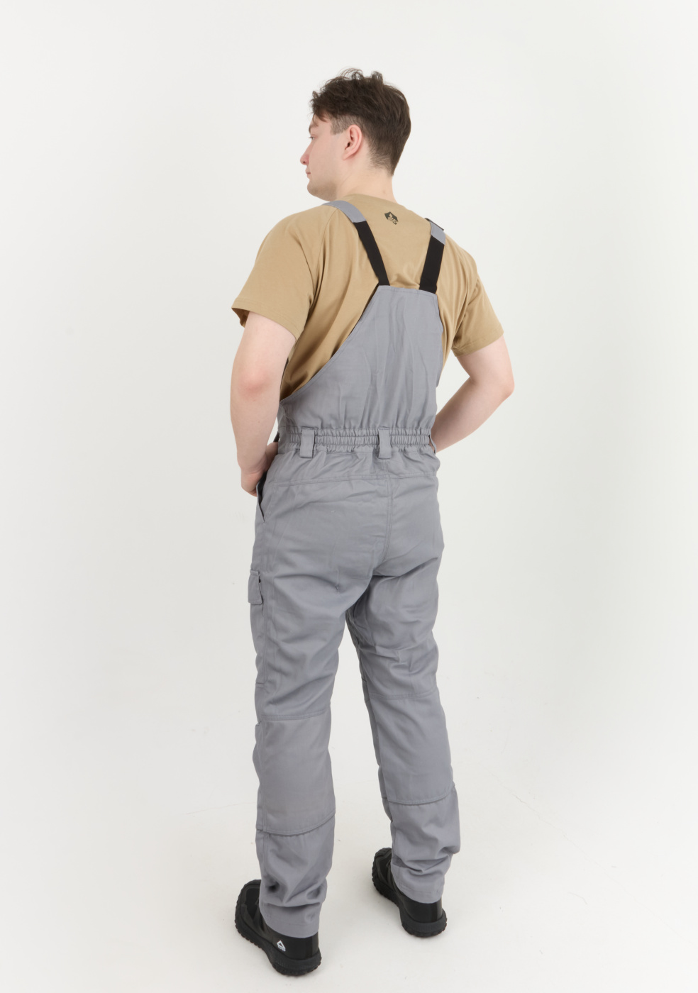 Рабочий комплект выполнен в сером цвете, что позволяет его легко сочетать с другими элементами рабочей одежды
