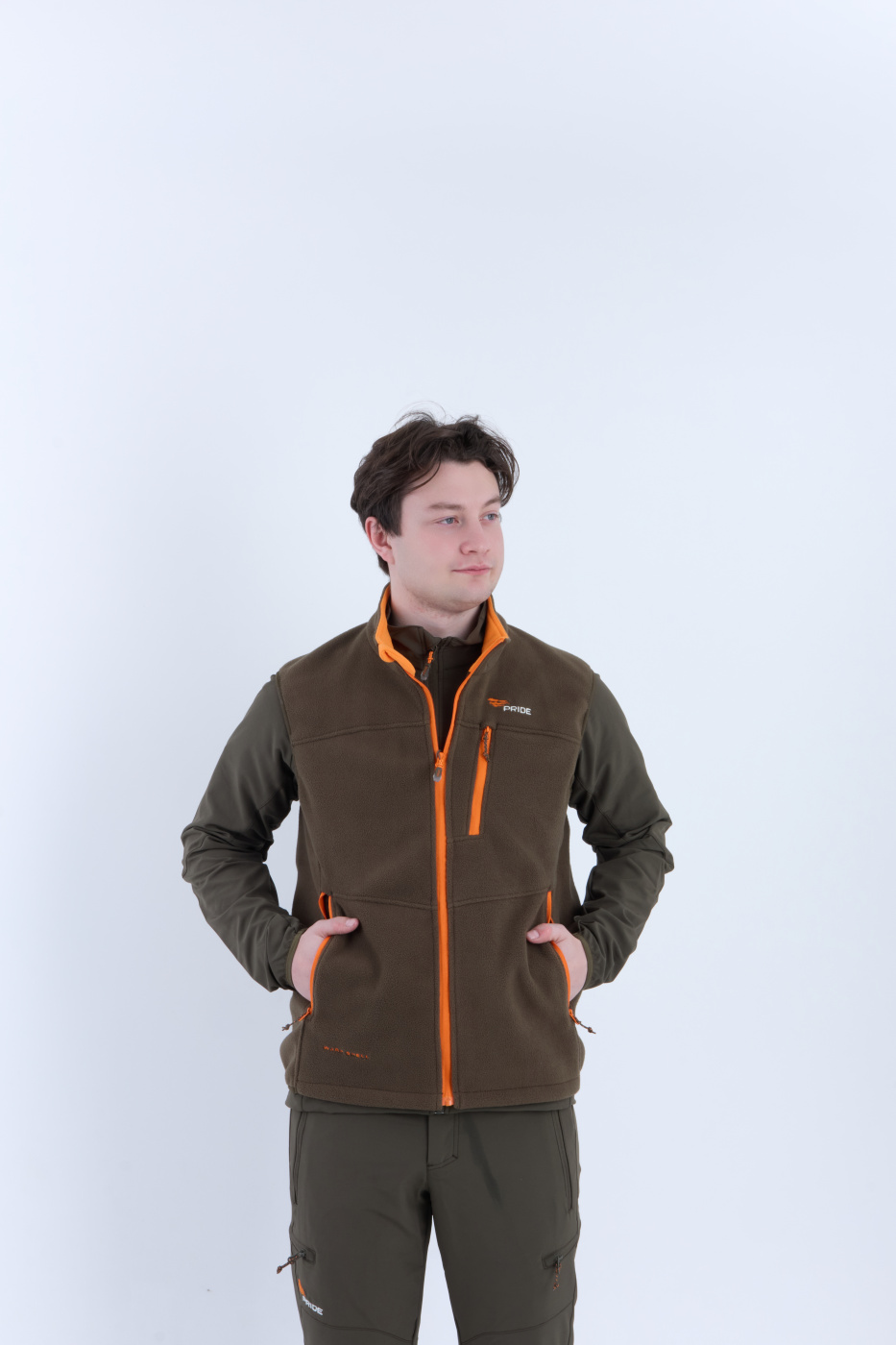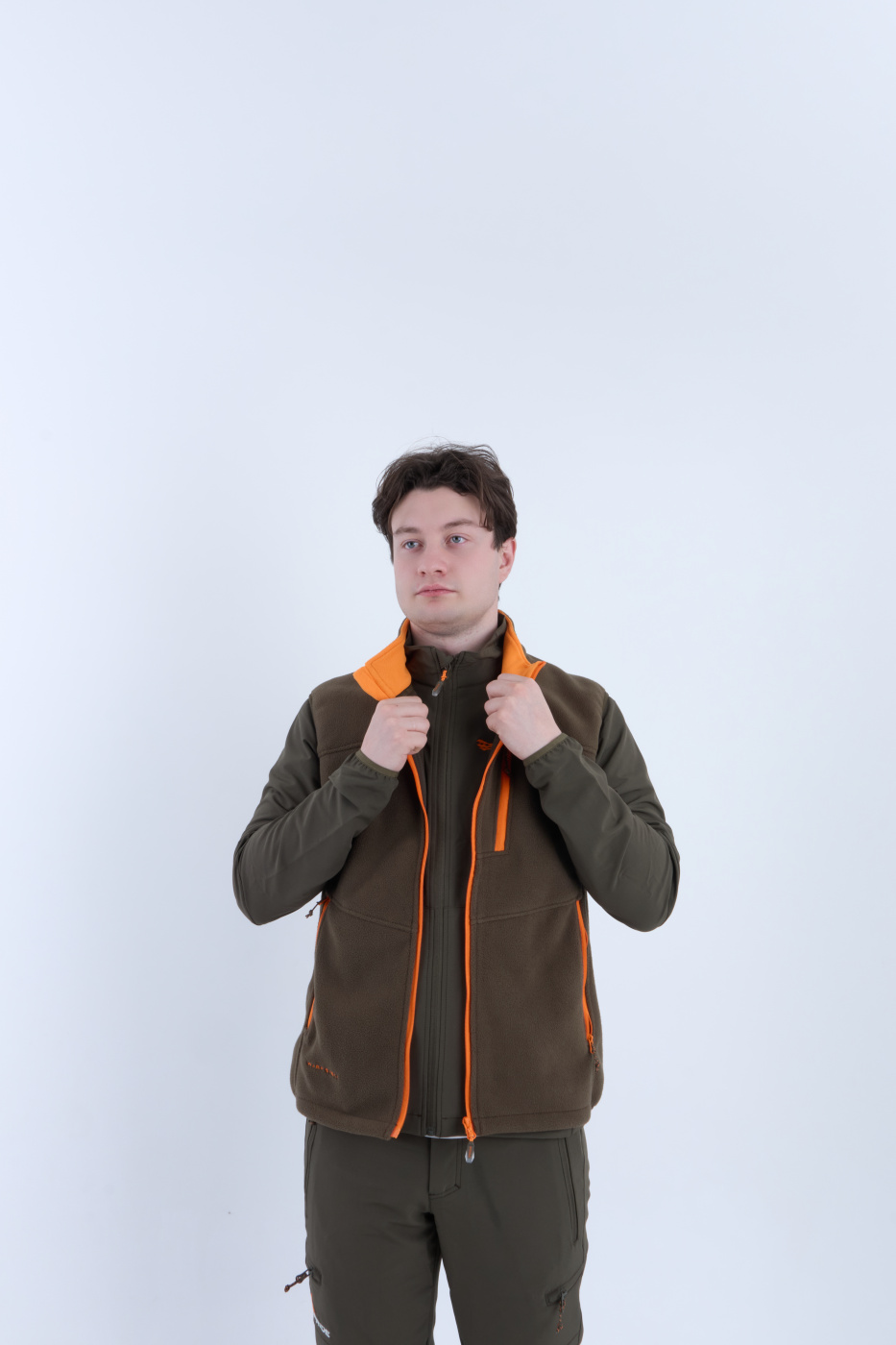 Жилет Кольт из дабл-флиса универсального назначения. Изделие прямого силуэта подойдет для любого типа фигуры. Дабл-флис уникальный материал - двойное трикотажное полотно из полиэстера обладает рядом уникальных свойств: сохраняет тепло, эластичен, не требует специального ухода (допускает машинную стирку), быстро сохнет,  даже в намокшем состоянии сохраняет теплоизолирующие свойства, не вызывает аллергии. Жилет имеет удобную центральную разъёмную застёжку молния с защитным клапаном. Воротник стойка мягко прилегает к шее и обеспечивает тепло и комфорт в ношении изделия. Карманы для рук и нагрудные карманы на молнии обеспечивают надежное хранение вещей. Эластичные проймы и низ жилета. Жилет Кольт — незаменимая вещь в любое время года на охоте,в поездках на природу, а также в городе.